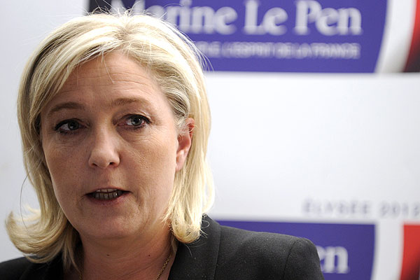 Marine Le Pen (Neuilly-sur-Seine, Francia, 1968) es una abogada y política francesa de extrema derecha, presidenta del Frente Nacional desde enero de 2011 en sustitución de su padre, Jean-Marie Le Pen, tras derrotar en las primarias de su partido a Bruno Gollnisch. Desde julio de 2004 es eurodiputada y consejera regional en Nord-Pas-de-Calais desde marzo de 2010. Fue candidata a las elecciones presidenciales de 2012. En julio de 2013, la Eurocámara decidió retirarle la inmunidad parlamentaria por "incitación al odio racial".