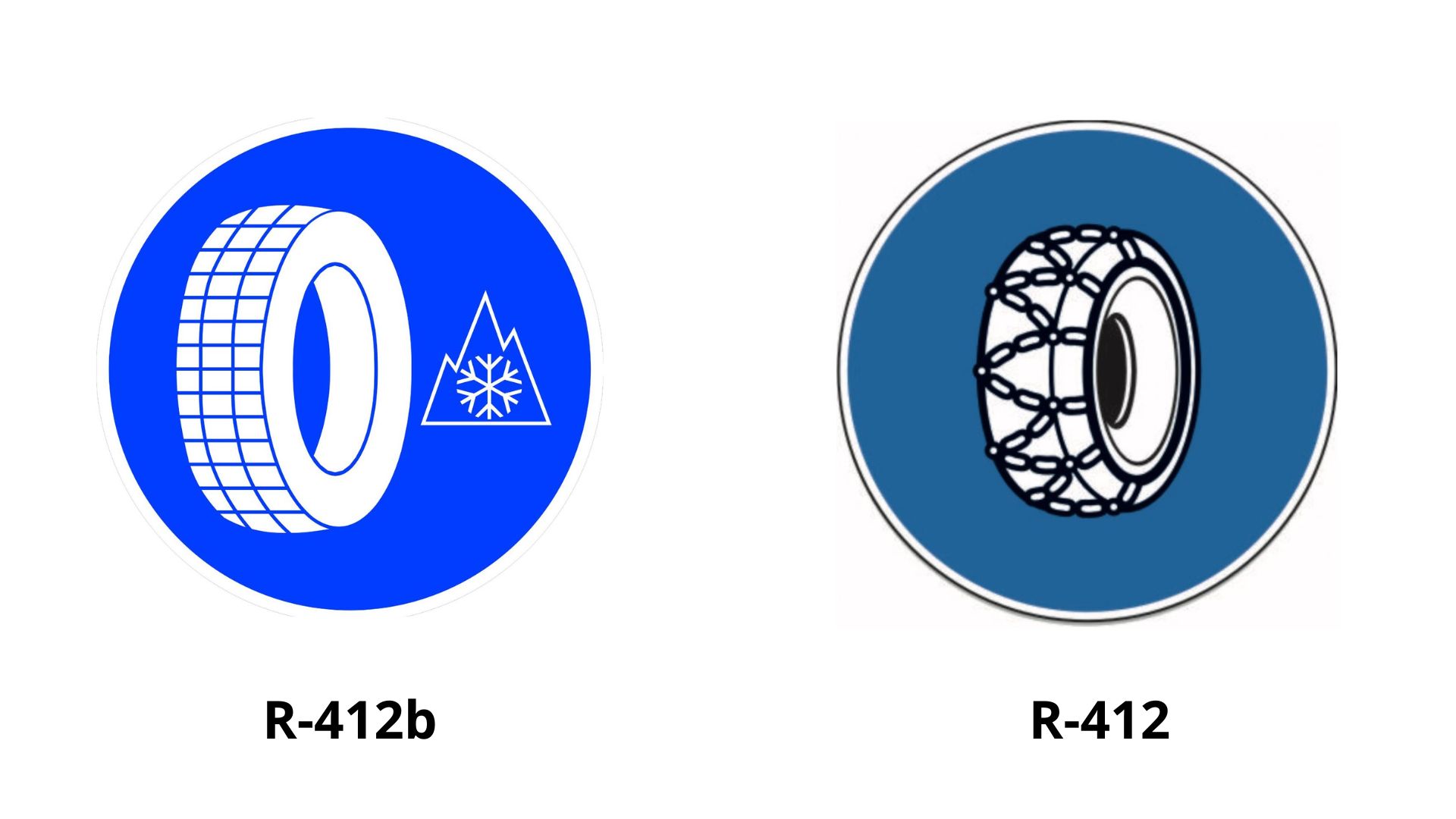 ➡️ El nuevo pictograma R-412b especifica la obligación de no proseguir la marcha si no disponemos de neumáticos de invierno. Complementa a la ya existente R-412 que indica la obligación de no proseguir la marcha sin cadenas para nieve. #NuevasSeñales pic.twitter.com/e7OCJrtZy4