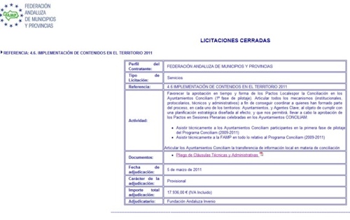 Lo curioso de esta adjudicación es que la FAMP ha tardado un mes en ver toda la documentación de los aspirantes y decidir sobre el asunto. El pliego de condiciones se publicó el 1 de febrero de 2011 y la adjudicación se publicó el 5 de marzo. Es decir, en un mes la entidad tuvo que entregar toda la documentación que se exigía y cumplir todas las condiciones y, en competición con otras, ser elegida. Vea el pliego de condiciones.