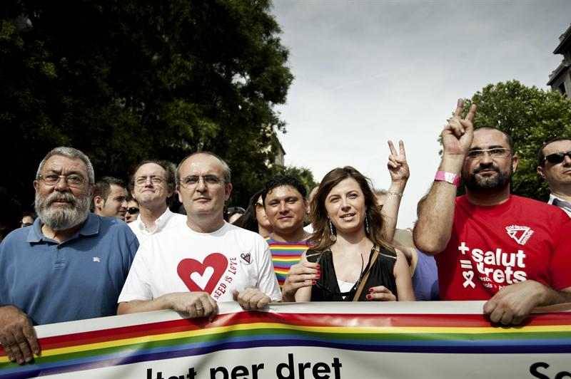Un año más, el PSOE quiso sacar rédito político de la marcha del Orgullo Gay, que recorrió las principales calles de Madrid. Concretamente, Bibiana Aído definió como "de la vergüenza" el recurso presentado ante el Tribunal Constitucional contra el matrimonio homosexual. "Va en contra de la felicidad", afirmó, mientras portaba una pancarta junto a otros típicos de la cita como Pedro Zerolo o representantes sindicales.