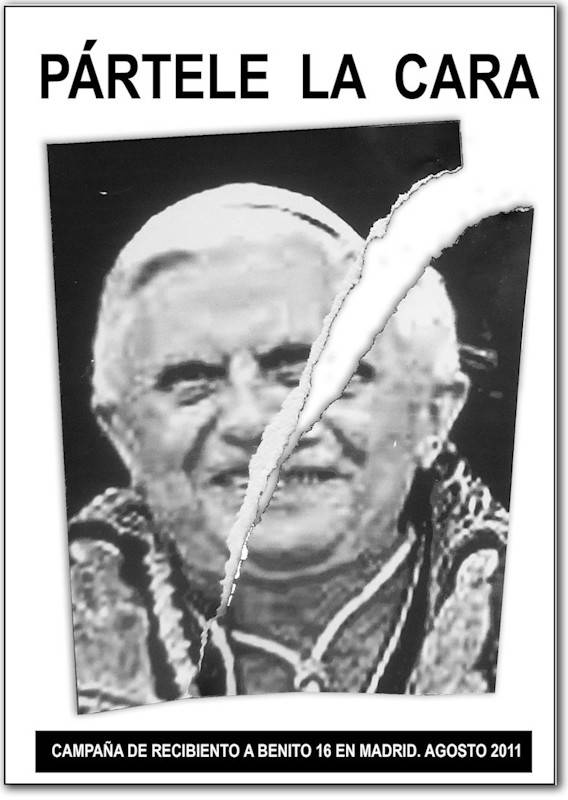 El colectivo Cuerpos Feministas Laicos invita a los ciudadanos a recibir a Benedicto XVI "como se merece", dice, y anima a romper fotografías con la cara del Papa ante su visita a España en la próxima Jornada Mundial de la Juventud.