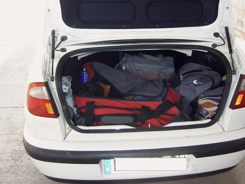 El coche, ocupado por un marroquí afincado en Barcelona, su mujer y su hijo, tenía el maletero cargado de equipaje y un agente observó "un levísimo movimiento" en una de las bolsas, por lo que pidió al conductor que la abriese.
