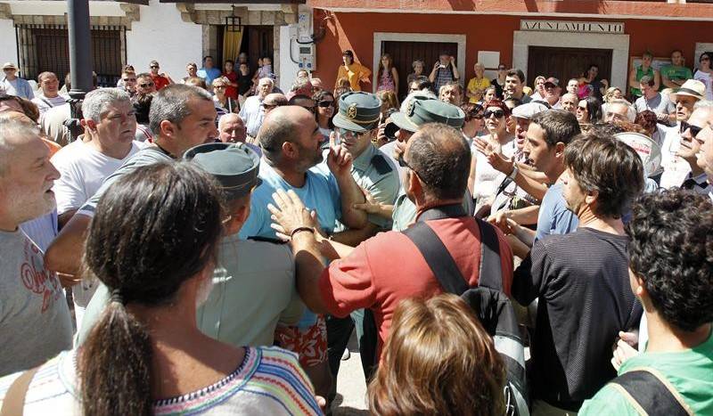 Ha sido entonces cuando han comenzado enfrentamientos entre vecinos y concentrados, con insultos verbales y empujones, lo que ha motivado la rápida intervención de los agentes de la Guardia Civil, que han evitado que el altercado fuera a más.