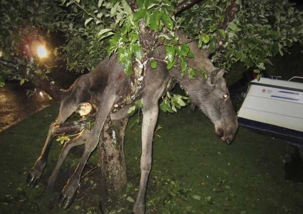Un alce dicen. Já. A mí no me la dan. Eso es uno del 15-M de allí de donde quiera que sea que preceden los alces, y que seguramente esté protestando. Vamos que tiene más pinta de perroflauta que de alce. Aunque quizá sea un alceflauta. Pero vamos: borracho, con cuernos, en medio de un sitio público, le tienen que rescatar… Un indignado. Fijo.