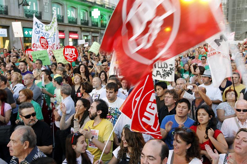 La manifestación, la segunda que se celebra en el centro de Madrid en menos de una semana contra el gobierno de Esperanza Aguirre, ha partido minutos antes de las siete de la tarde y se ha dirigido hacia la Puerta del Sol, donde se ha leído un comunicado por parte de los portavoces de los sindicatos.