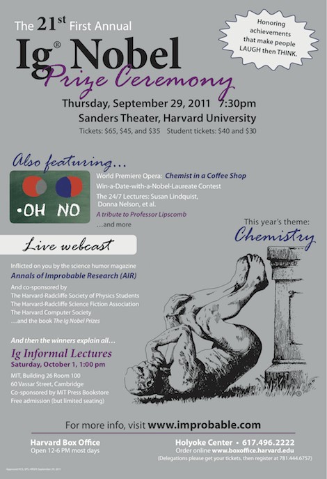 Los Ig Nobel, promovidos por la revista Anales de Investigación Improbable como alternativa divertida a los Nobel, se entregaron el jueves en Harvard.