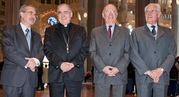 (El cardenal, junto a Matabosch, primero por la derecha, y Rigol, entre ambos)