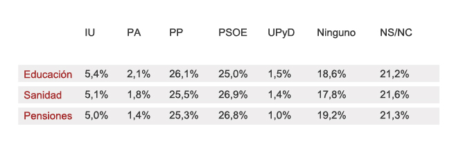 9)En cuanto a la gestión de las pensiones, la sanidad o la educación, la diferencia es mínima entre ambos partidos. Vean: