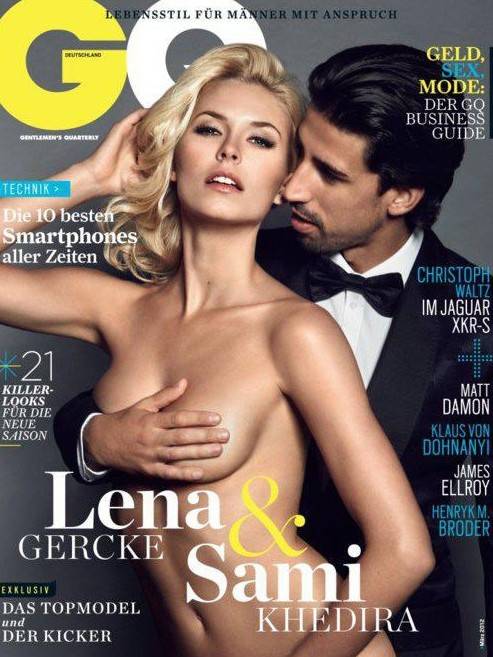 Khedira, de origen tunecino, aparece junto a su bella novia, Lena Gercke, posando sexualmente en un reportaje que ha dado la vuelta al mundo. Debido al origen de Khedira, la revista decidió publicar la portada.