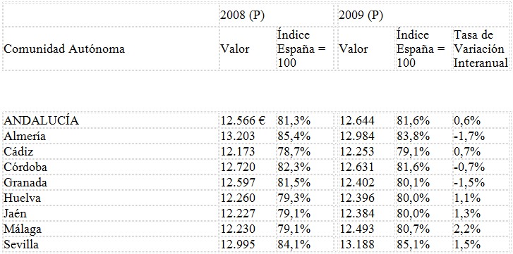 Aunque la renta familiar disponible per capita, siempre por debajo de la media nacional, se acercó a la media andaluza en 1992, luego empezó a caer hasta unos niveles que en 2009, según la propia Diputación de Cádiz, la renta bruta per cápita era de 7.006 € (INE 2009), el 71,5% de la media nacional, la más baja de Andalucía y la tercera más baja de España.
