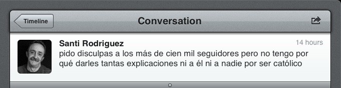 Además, otra serie de usuarios le han tachado de "cristofascista". En un tuit el propio actor aseguraba que no tiene que dar explicaciones "por ser católico". En este sentido, Rodríguez que se ha manifestado como católico practicante e incluso ha contado su experiencia en distintas charlas y entrevistas en medios de comunicación. Su confesión como creyente desde entonces le ha granjeado algún que otro problema.