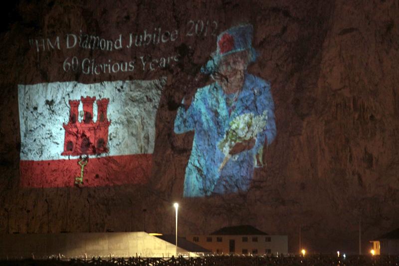 Gibraltar proyectó durante la noche del pasado martes en la superficie de la cara noroeste del Peñón imágenes de unos 80 metros de longitud de la reina Isabel II de Inglaterra, cuyo cumpleaños la colonia celebraba el mismo día con su hijo Eduardo como invitado.