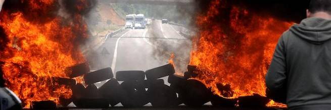 Los hechos se produjeron sobre las diez de la mañána, cuando un grupo de mineros cortó con una barricada la autovía A63, que une Oviedo con La Espiga, a la altura del punto kilométrico 13, junto al pequeño municipio de Santa María, con el objetivo de protestar por el recorte a las subvenciones al sector del carbón.