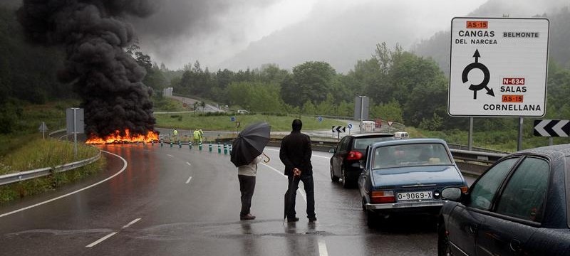 Las otras dos incidencias del día, que a las 10:15 horas mantenían cortado el tráfico, son la A-8 y la N-632 ante las barricadas colocadas en los kilómetros 349 y 118, respectivamente. En la primera la circulación ha quedado interrumpida a las 9:24 horas y en la segunda a las 8:21, informa la Dirección General de Tráfico.