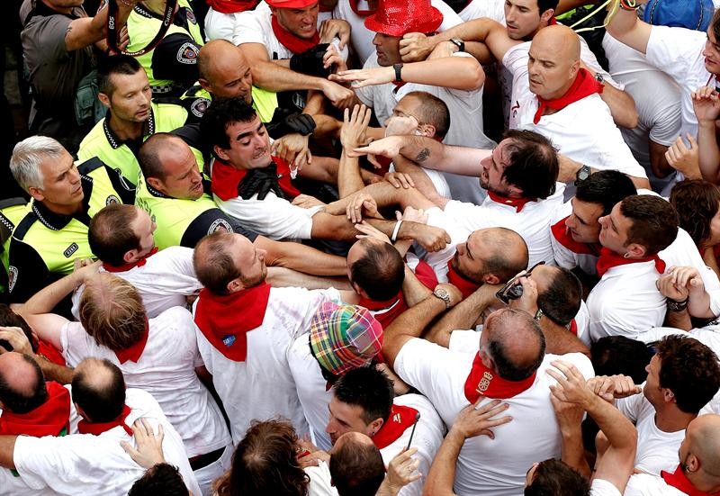 Los SALVAJES DE SIEMPRE, se encargaron de que la FIESTA se nublara. Son proetarras venidos del Pais Vasco. ASÍ DE CLARO. Los mismos que se encargan de extender la puta ikurriña en nuestra plaza del excelentísimo Ayuntamiento de Pamplona. GENTUZA que no sabe vivir en democracia y que la nauseabunda Justicia que tenemos, se la cepillan como les da la gana.