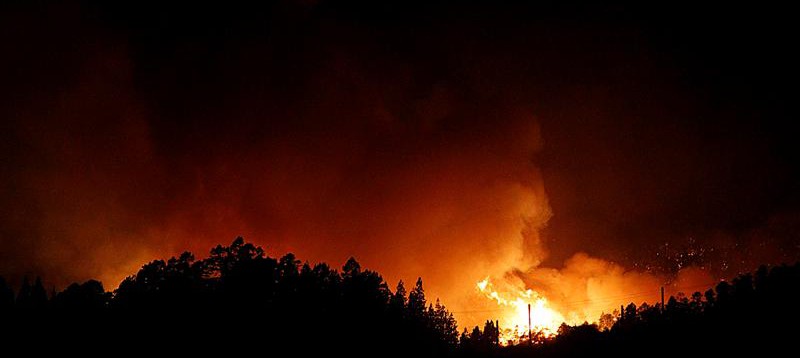 Los dos frentes del incendio forestal que desde el domingo se registra en el sur de Tenerife permanecen activos, mientras que en La Palma durante la noche se ha trabajado por mantener el fuego dentro del perímetro que conforman las coladas volcánicas del Volcán Montaña Quemada al este, norte y sur.