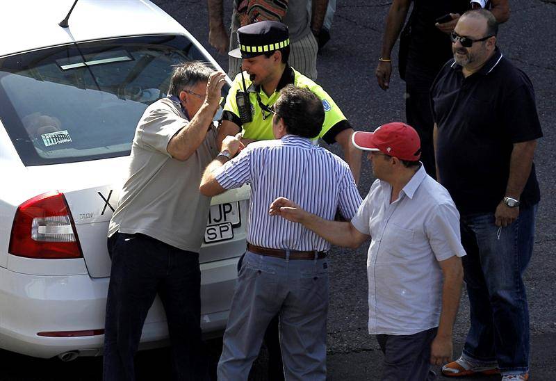 En un caso, los manifestantes han apeado a los clientes de un taxi, como ocurrió al inicio de la marcha, y lanzado huevos al vehículo, según fuentes consultadas por Efe. "Bájese, que le van a pegar", le dijeron al cliente antes de emprenderla contra el conductor.