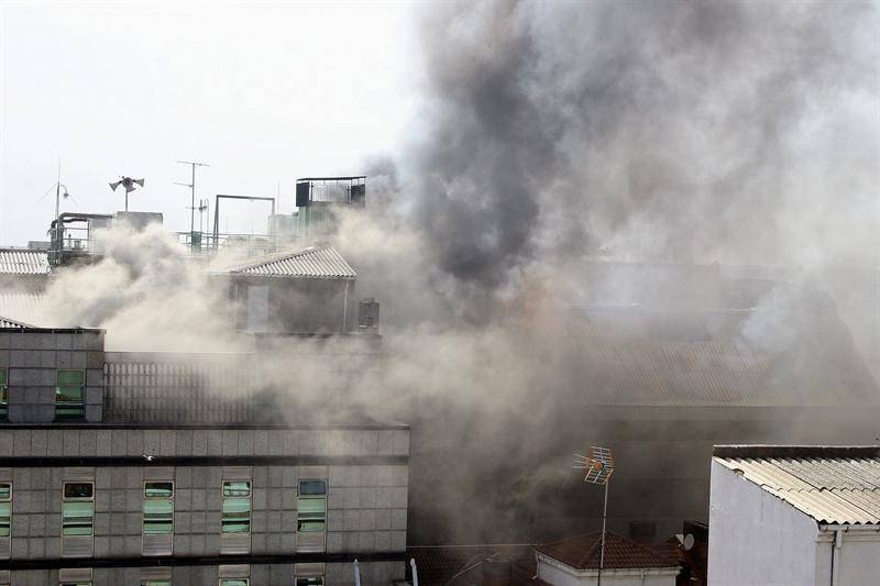 Un incendio ha arrasado varias plantas del edificio del Ayuntamiento de León situado en la avenida Ordoño II. No hubo que lamentar daños personales aunque varios bomberos tuvieron que ser atendidos por inhalación de humo.