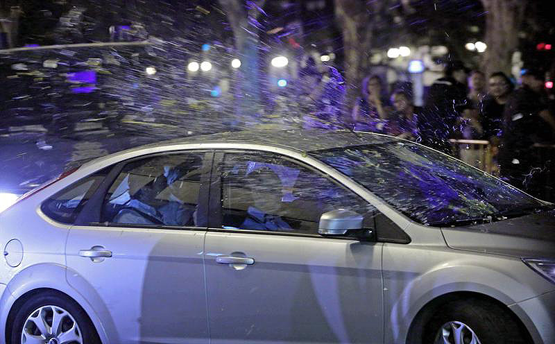 Al término de esta reunión, unas 200 personas que permanecían concentradas desde una hora antes de la reunión de este órgano, han esperado a las puertas del edificio para recriminar a los consejeros del PP su apoyo al ERE, entre gritos de 'Lladres' (Ladrones) y 'Ratas'. Los representantes del PP han abandonado el edificio en tres coches, sobre los que ha caído una lluvia de huevos.