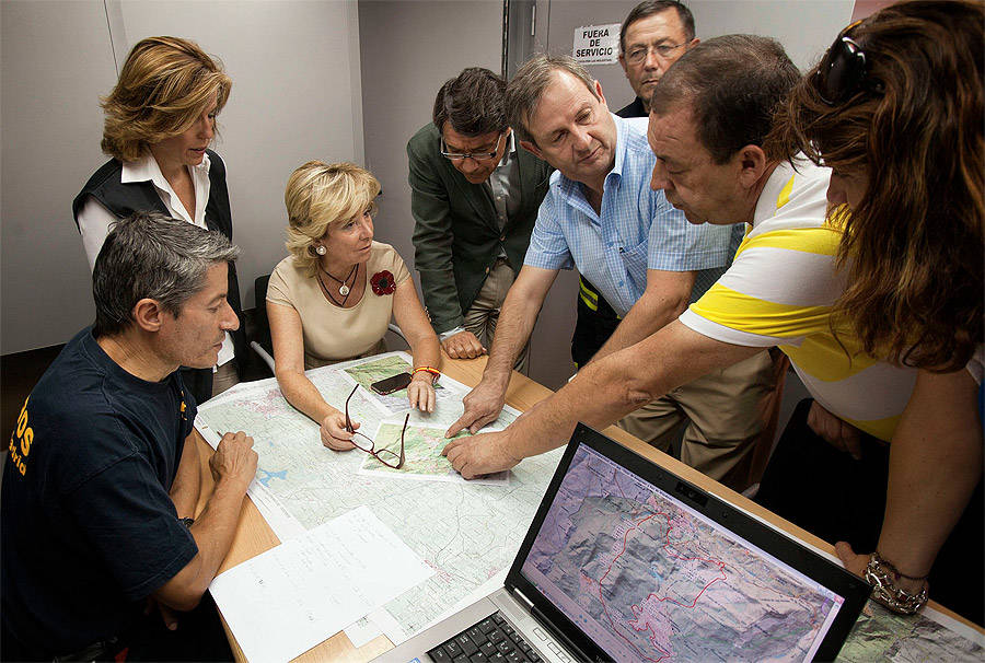 Según informa Europa Press, Aguirre ha acudido a Robledo de Chavela a las nueve de la mañana acompañada por el vicepresidente regional, Ignacio González, en una visita de la que no se había informado previamente a los medios de comunicación.