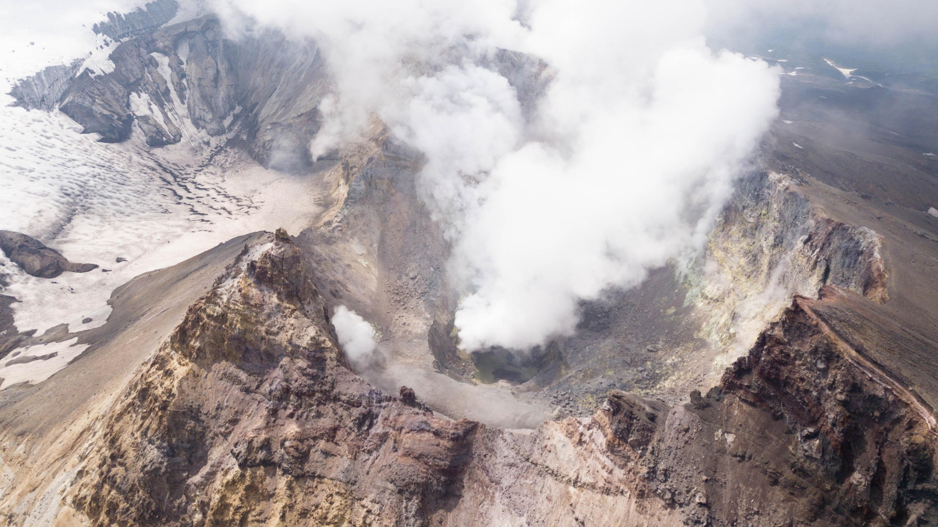 La península de Kamchatka es una de las zonas de mayor actividad volcánica del planeta, albergando más de 300 volcanes, de los cuales aproximadamente una treintena se mantienen activos.