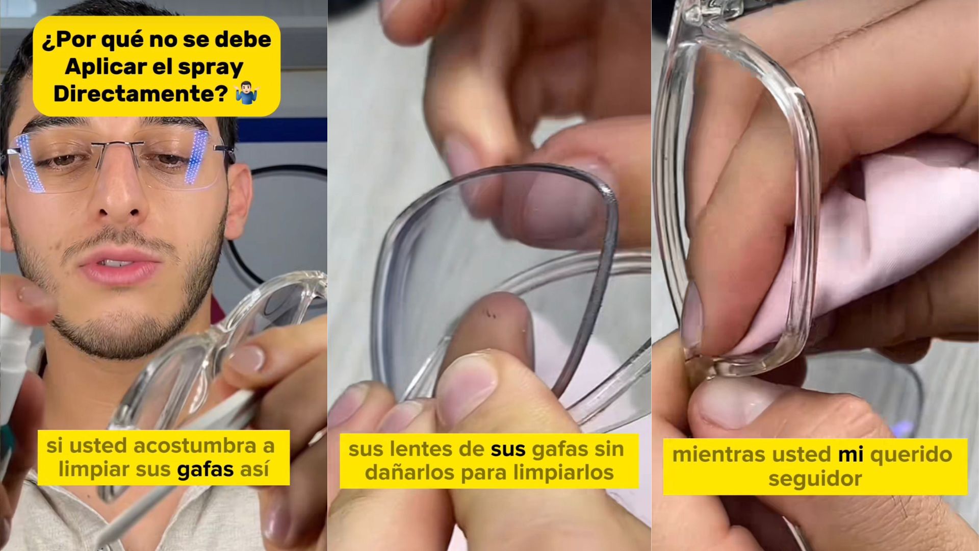 El creador de contenido ha comentado en su vídeo que la mayoría de la gente conoce la forma correcta de limpiar los cristales de las gafas sin crear rayones. Sin embargo, aún sigue siendo muy común utilizar líquidos limpiadores directamente sobre las lentes sin prestar atención a las consecuencias negativas que pueden generar en las molduras de las gafas. El experto ha explicado que cada vez que se hace esto las gafas "se llenan de mugre" y, por ello, recomienda dejar de hacerlo.