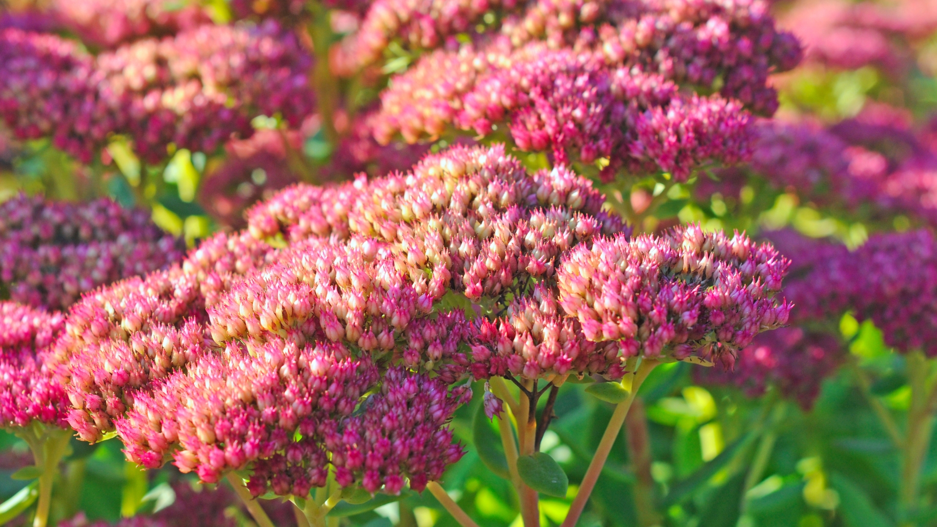 - Sedum: Esta planta, también conocida como uña de gato, es una suculenta robusta que ofrece flores rosadas o rojizas en otoño, atrayendo polinizadores al jardín. Tolera heladas ligeras, sequía y suelos pobres, lo que la convierte en una opción de bajo mantenimiento. Prefiere lugares soleados y requiere riegos escasos, especialmente en climas fríos. Su plantación se facilita con esquejes directos en tierra bien drenada. No necesita poda frecuente, aunque una limpieza tras la floración mejora su forma.