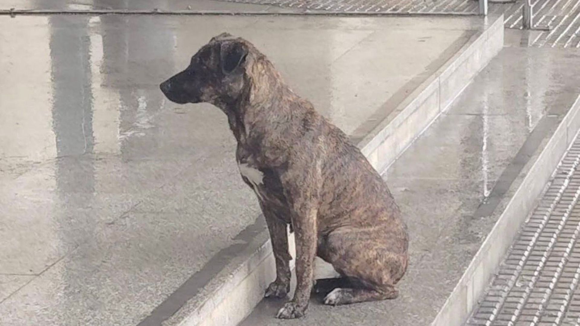 Las imágenes muestran a la perra empapada y tiritando de frío, sin buscar refugio en cornisas cercanas ni alejarse para buscar comida. Siempre mirando hacia la entrada y fija en el flujo de personas que entran y salen del centro sanitario.