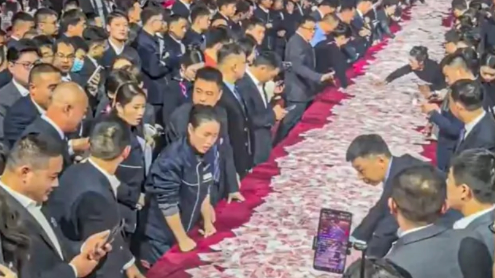 La empresa organizó un evento multitudinario con unas 800 mesas de banquete para acoger a alrededor de 7.000 empleados. Sobre ellas, montañas de billetes listas para ser repartidas sin intermediarios ni transferencias bancarias. En una de las actividades más comentadas, los trabajadores podían contar el dinero ellos mismos: todo lo que lograran contar, se lo llevaban a casa.