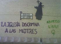 Las pintadas, que rezan "sacad vuestros rosarios de nuestros ovarios", "la Iglesia discrimina a las mujeres" o "aborto libre" ocupan la totalidad de la amplia fachada exhibida en las fotografías.