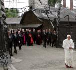 Benedicto XVI añadió que mediante "previsiones de bienestar y con la fuerza del terror y de la intimidación, nuestro pueblo (el alemán) pudo ser usado y se abusó de él como instrumento en la locura de destrucción y de dominio". "Sí, tenía que venir", añadió el Papa, que recordó que ya acompañó a Juan Pablo II en su visita a este complejo de la muerte en 1979 y que volvió en 1980 con un grupo de obispos alemanes "horrorizados a causa del mal" y esperanzados de que sobre esas "tinieblas se alzara la estrella de la reconciliación".