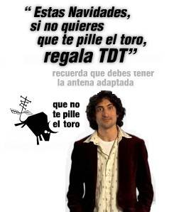 La campaña, que cuenta con un presupuesto de 6 millones de euros, quiere "convertir la TDT en el regalo tecnológico de estas Navidades" para que no "pille el toro" a los ciudadanos, según afirmó Industria en un comunicado. Asimismo, los anuncios de esta campaña, que se prolongarán hasta el próximo 5 de enero, se emitirán en televisión, radio, prensa, gráfica e Internet, además de la página web www.quenotepilleeltoro.es.