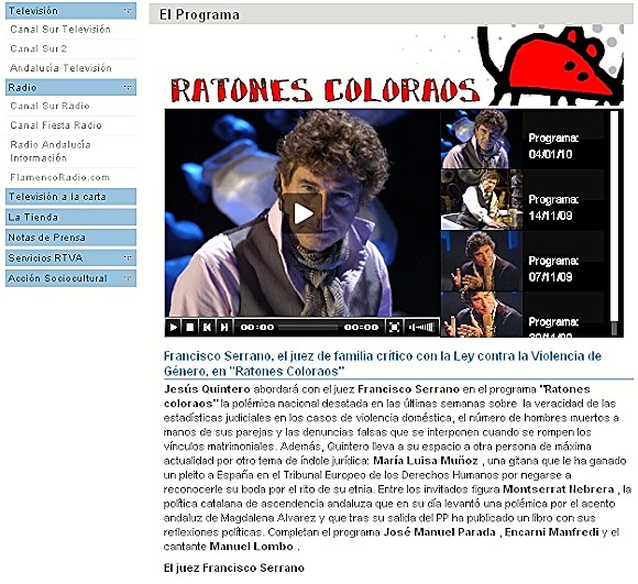 El programa de Canal Sur, Ratones Coloraos, dirigido por Jesús Quintero había anunciado la entrevista al juez Serrano, crítico con la parcialidad de la ley de violencia de genero y acosado por los colectivos feministas por atreverse a decir que existen denuncias falsas de agresiones aprovechando esta normativa.