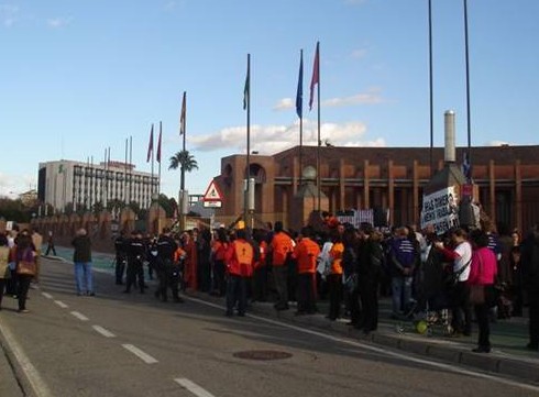 Los participantes lo han contado así: "Hoy a las cuatro y media, un buen grupo de cruzados, de arias Consejerías, moraos, naranjas blancos y negros, hemos ido recibir a las puertas del PALACIO DE CONGRESOS de Sevilla. Allí el Sr. Griñán fue a inaugurar el: II Congreso sobre el Éxito Educativo y la Autonomía de los Centros. Nosotros en consonancia con el Congreso fuimos educados y lo recibimos como él se merece.