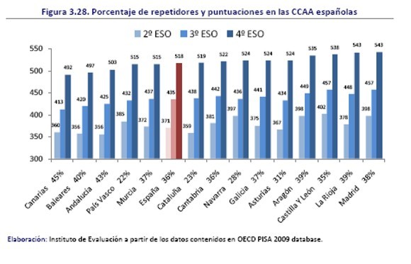 Sin embargo, este sistema educativo se deja atrás a un tercio de los alumnos, (en Andalucía a casi la mitad)cuyos resultados son, además, comparativamente decepcionantes. Currículo, profesorado, recursos y organización escolar son similares para unos y otros alumnos, pero los resultados difieren en uno o en dos niveles de rendimiento, según los alumnos hayan repetido uno o dos años.