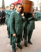 Entre tanto, la viuda del agente, vestida de negro y con gafas de sol para ocultar su total abatimiento, apretaba entre sus manos el tricornio y una cajita con la condecoración de su marido, arropada en todo momento por agentes de la Guardia Civil, alguno de los cuales tenían que esforzarse para no romper a llorar.