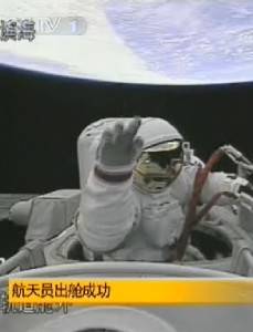 Zhai tardó unos 15 minutos en abrir la compuerta al exterior, una operación que le costó bastante esfuerzo físico, y finalmente salió al cosmos, miró a una cámara colocada fuera del módulo y saludó a los millones de chinos que estaban viendo el acontecimiento en directo a través de la televisión estatal china CCTV-4.