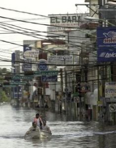 Sucursales bancarias, casas de empeño, peluquerías, tiendas de alimentos, hoteles y otros establecimientos comerciales situados en el centro de la ciudad están inundados mientras en las viviendas de los segundos pisos se observa a quienes se negaron a abandonar sus casas por miedo a la rapiña. "Estimado cliente, por contingencia, la oficina estará cerrada hasta nuevo aviso", reza un cartel en uno de los locales comerciales prevenido de la catástrofe que se avecinaba.