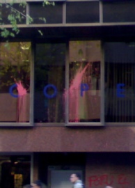(Libertad Digital) La cadena COPE sigue siendo víctima de los ataques de los radicales en la campaña de acoso que ha sufrido estos últimos años. La sede de la emisora de radio en Barcelona ha aparecido este martes con pintadas como "COPE facha" o "fuera de aquí" así como con pintura roja arrojada contra la fachada. No es la primera vez que son destinatarios de este tipo de ataques después de la aparición de pintadas en la sede de Madrid y los destrozos que recibió la emisora en Vigo en 2007.