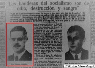 Es sabido que Manuel Almeida liberó del "marxismo" a los pueblos pacenses de Burguillos del Cerro, Almendral, La Albuera, Olivenza yVillanueva del Fresno en el verano-otoño de 1936 como voluntario de una Centuria de Falange Española.