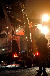 L D (EFE) El accidente se produjo ayer sobre las 19.30 horas en el punto kilométrico 224 de la A-7, a su paso por la localidad malagueña de Benalmádena, al parecer por el adelantamiento antirreglamentario de un todoterreno, que hizo que el autobús se saliera de la vía y volcara.