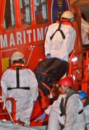 Por su parte, el segundo cayuco, con 39 personas entre ellas dos muertos, fue localizada frente a la playa de Las Vistas, en Los Cristianos, y trasladada al puerto.