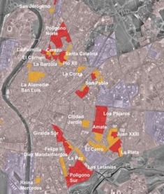 Los barrios seleccionados para el desarrollo del estudio han sido Torreblanca, en Sevilla; la barriada malagueña de Palma-Palmilla, Pescadería-Chanca, en Almería, y Cádiz Centro. Egea sostiene que "los cascos antiguos de las ciudades y los barrios periféricos construidos en los 60 y 70 son los más desfavorecidos". "Paradójicamente, cuanto mayor es la actividad económica de una ciudad, mayor es el número de zonas deprimidas que presenta".