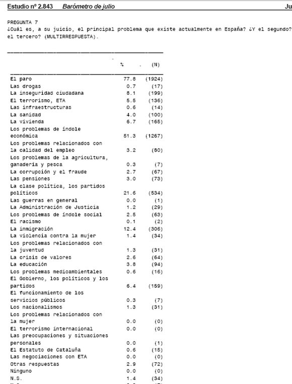 Sin embargo, por ejemplo, en el último barómetro del CIS de julio 2010, las preguntas generales eran estas: