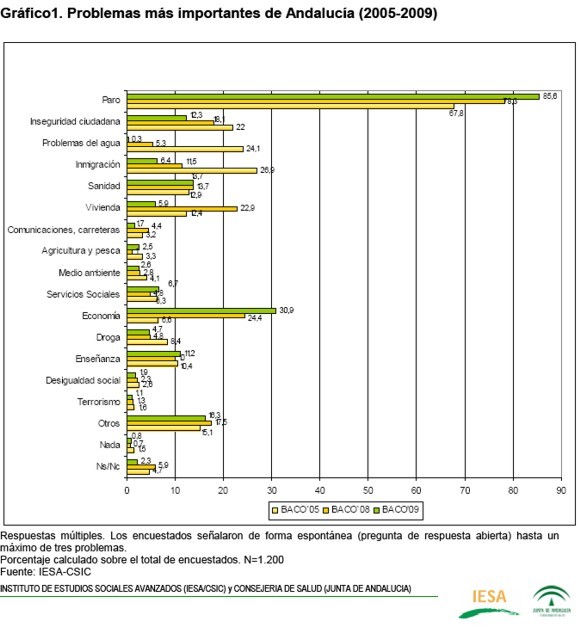 Aquí tienen, como botón de muestra, el cuadro en el que se pregunta por los problemas de los andaluces: