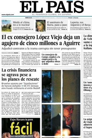 La información, que había merecido honores de portada y cuatro columnas en la edición del pasado miércoles 18 de El País, aseguraba que López Viejo se había gastado dinero que no estaba incluido en su dotación presupuestaria.