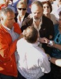 El otro colectivo (apoyado por concejales del PP local) respondió con pitidos y con gritos de "asesinos". La proximidad entre ambos grupos empeoró la situación hasta tal punto que la Policía Nacional tuvo que mediar para calmar los ánimos de ambos colectivos, que se habían ido incrementando hasta el medio centenar de componentes cada uno.