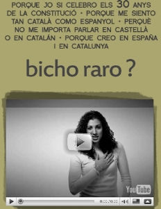 Bajo el título "¿Bicho raro?", esta campaña pretende, según el PPC, mostrar que por querer conmemorar la Constitución "no eres un bicho raro". En la página web de la campaña, www.bitxoraro.cat, se puede ver un vídeo en el que una serie de personas de distintas edades se preguntan si uno es un "bicho raro" por defender el bilingüismo, la libertad de los padres para escoger la educación que prefieren para sus hijos, por sentirse tan catalanes como españoles o por reivindicar la riqueza de hablar en dos lenguas. Los personajes del vídeo creen, dice el PP, en una Cataluña abierta y en una España abierta y consideran que la Constitución es la garantía de todo ello.
