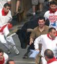 En la calle Estafeta se volvieron a repetir las caídas de corredores, alguno de los cuales fue sobrepasado por la manada mientras otros, desatendiendo las recomendaciones, se acercaron a los animales hasta tocarles en el lomo. En este tramo y en el de Telefónica se pudieron ver bonitas y rápidas carreras hasta entrar en la plaza, a cuyos chiqueros accedieron directamente los astados sin entretenerse en la arena y sin dar problemas a los dobladores a pesar de que la manada iba estirada y el colorado llegó algo más tarde que sus hermanos.