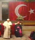 L D (Agencias) El Papa Benedicto XVI llegó este martes a Turquía para una de sus visitas más esperadas de su papado. El avión de Alitalia aterrizó a las 13:00 hora local (11.00 GMT), y traía una bandera turca estampada en la parte frontal. Erdogan estaba esperando al Papa al pie de las escalerillas, y al llegar, estrechó sus manos y juntos se dirigieron al salón VIP del aeropuerto, donde se reunieron a puerta cerrada durante unos veinte minutos.